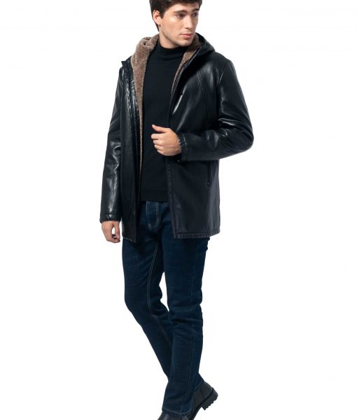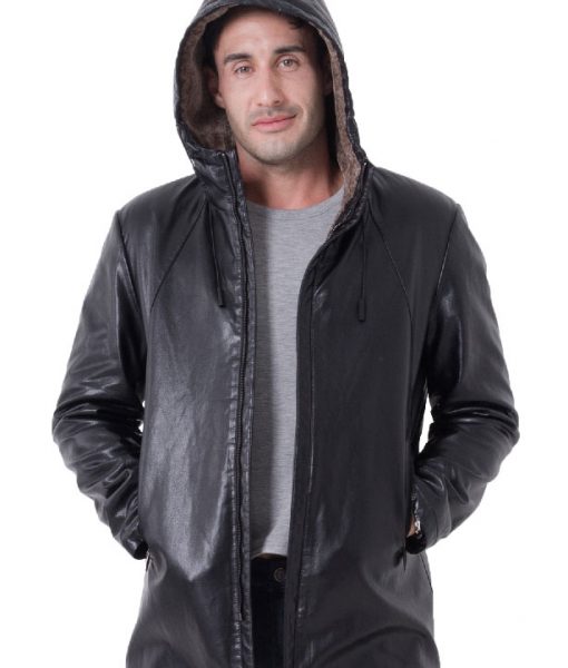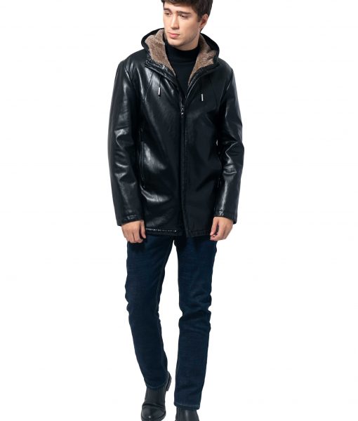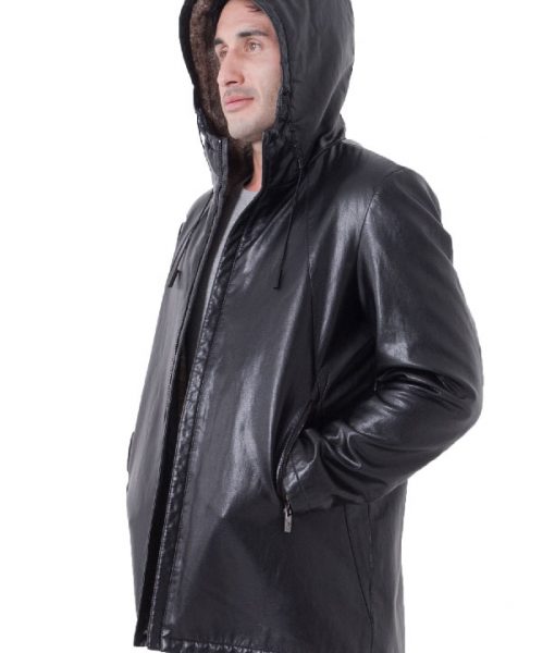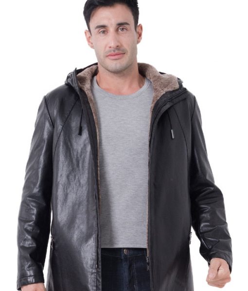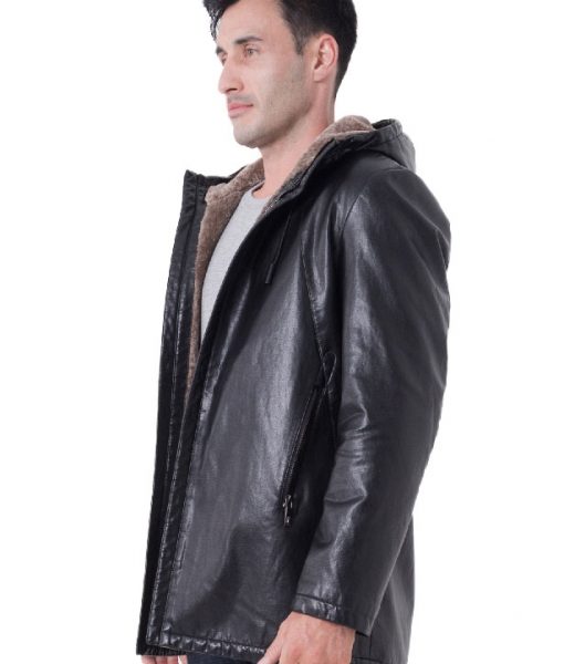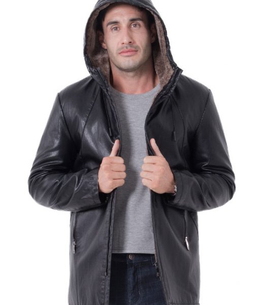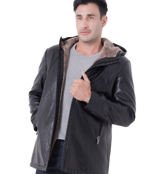 Mens Hooded Leather Jacket 178A is the Coat Made in Material Wool Wool The quality of ingredients makes your body to keep warm when wearing them. coated by deep fur inside to keep it warm. Fit combined with Shirt, Sweater, Long John, Jeans and Scarves. Suitable for activities inside and outside the cold room.