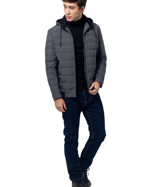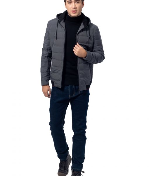 Mens Jacket Highcollar with Hood Jhon Grey – 200D