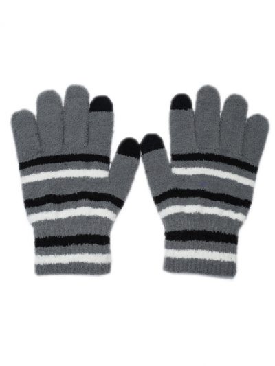 WOOL GLOVES TOUCH SCREEN STRIPE MIX COLOUR